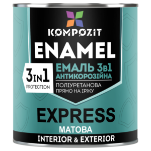 Система покрытия, состоящая из 1 слоя грунтовки EXPRESS Kompozit ® и 2 слоев полиуретановой эмали ELIT Kompozit ®, с общей толщиной сухой пленки не менее 160 мкм, сохранение защитных свойств на стальной поверхности при абразивоструйной очистке при коррозионных испытаниях по ДСТУ ISO 12944-6 для класса долговечности Н (15–25 лет) в условиях коррозионной агрессивности категории С3 и для класса М (7–15 лет) в условиях С4.